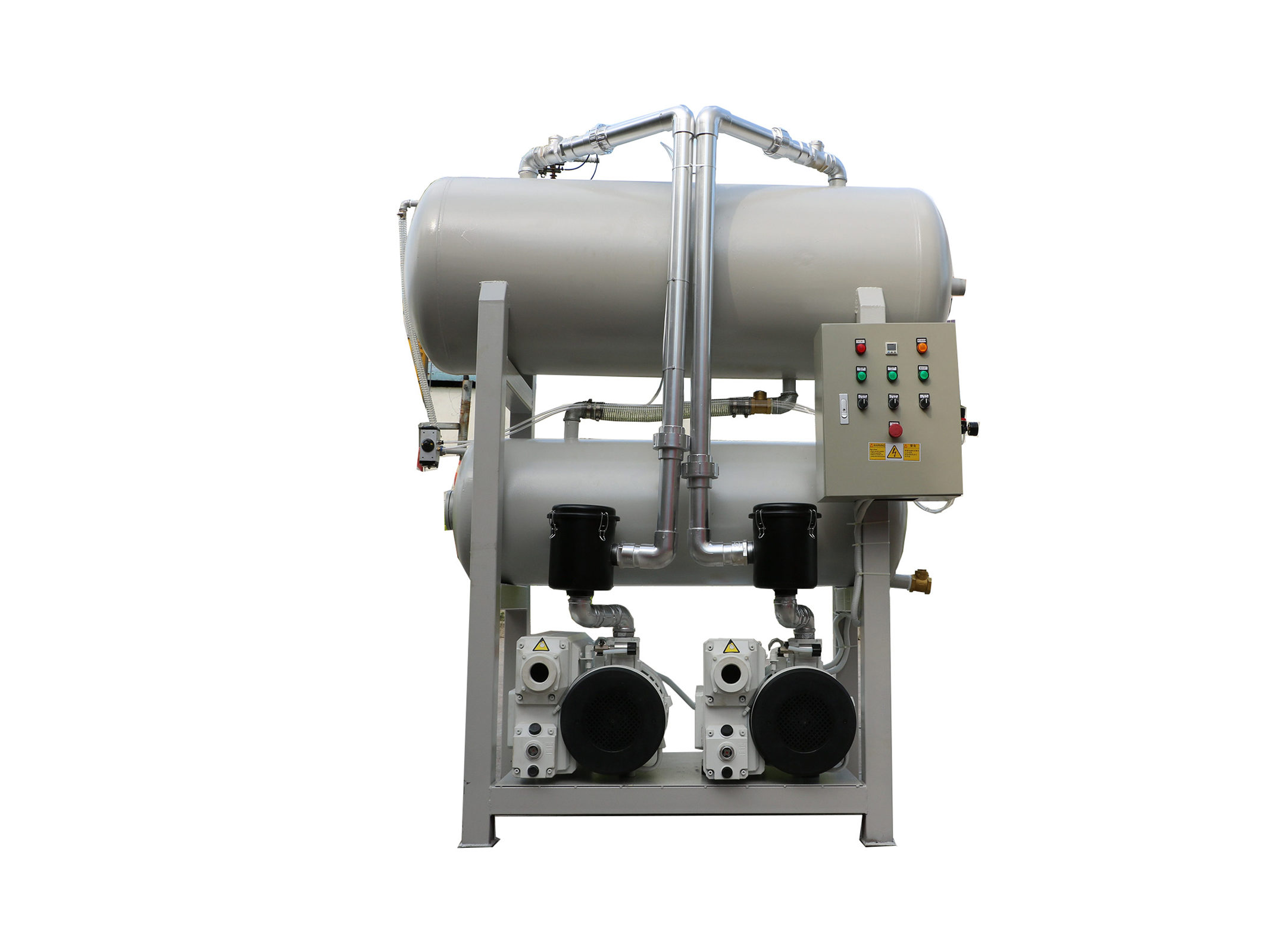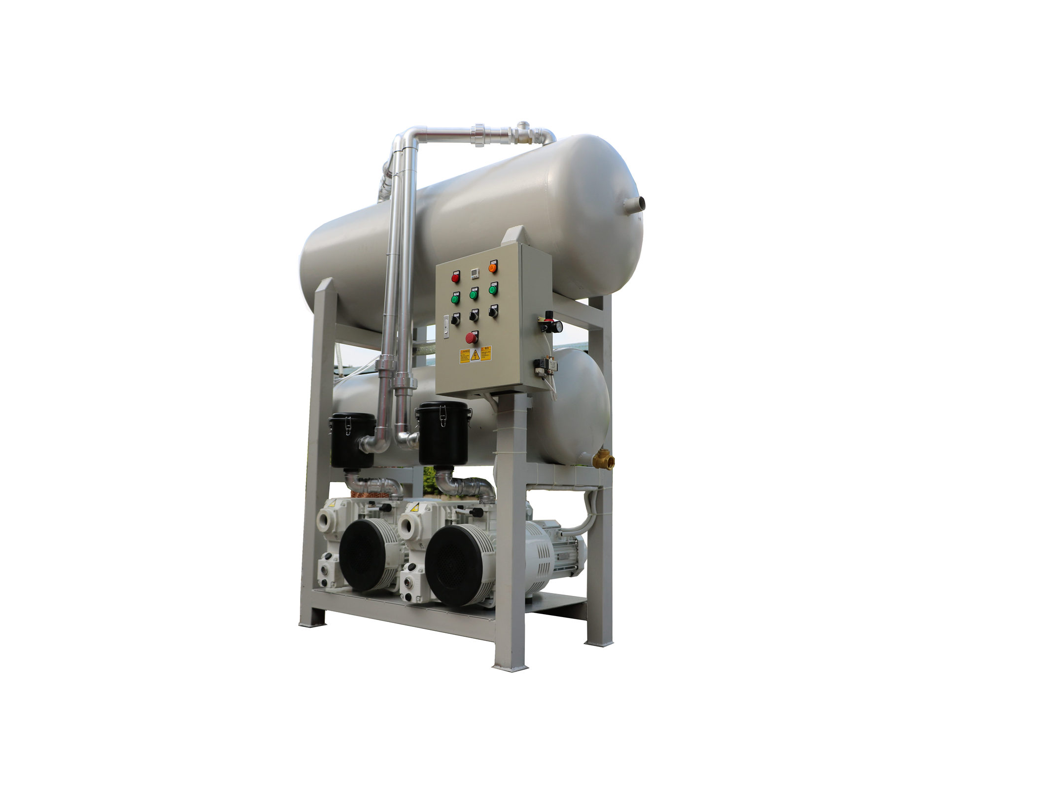 VG202雙泵雙罐臥室真空系統(tǒng)方式一般是根據(jù)客戶使用方法,真空緩沖的安裝方式來劃分,一般負壓站的真空緩沖罐超過0.6立方安裝在固定的設(shè)備房內(nèi),不經(jīng)常移動則做成固定式負壓站緩沖罐小于0.6立方臥式安裝負壓站需要多工位作業(yè),則做成移動式負壓站。